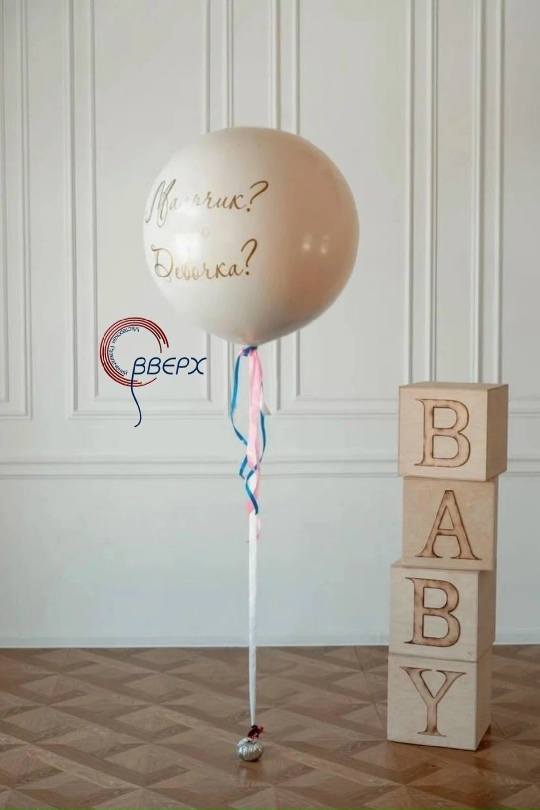 *Шар гендер (90см)(внутрь белого шара вставлен бежевый, чтобы наполнение не просвечивалось) с тремя наполнениями (шарики 20шт+перья+конфетти) и надписью 3500р
