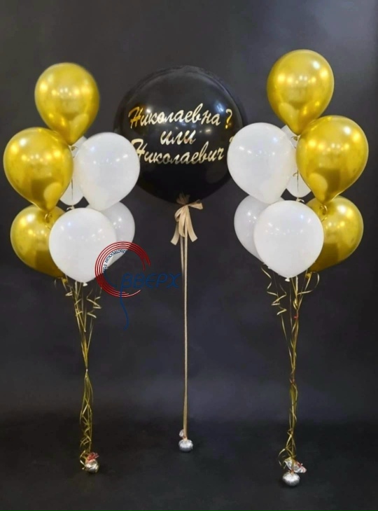 Гендер Шар (90см) с любой надписью и тремя наполнениями (шарики 20шт+перья+конфетти) - 2800р