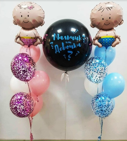 *Шар гендер (90см)с тремя наполнениями (шарики 20шт+перья+конфетти) - 2500р