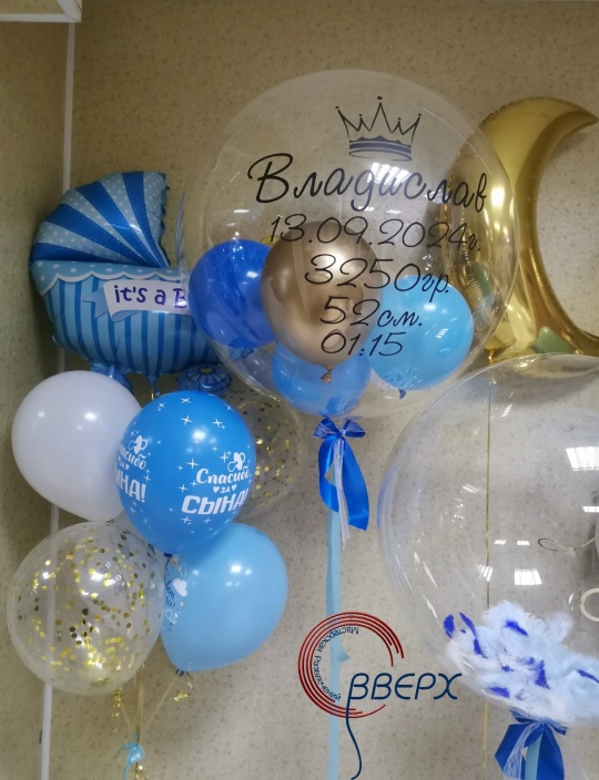 *Большой шар баблс с перьями/шариками и надписью 1500р×2шт